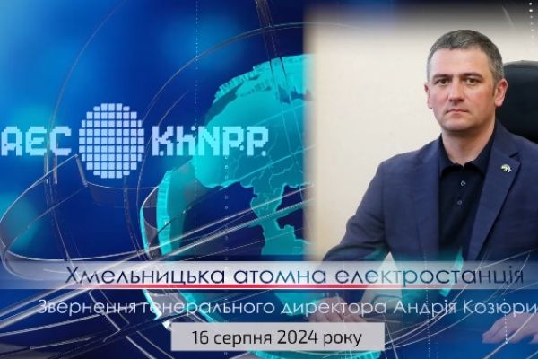 Звернення генерального директора Хмельницької АЕС Андрія Козюри від 16 серпня 2024 року щодо роботи підприємства радіаційного стану у зоні спостереження ХАЕС.
