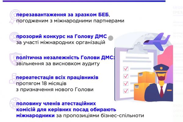– прозорий конкурс на голову ДМС за участі міжнародних організацій (призначається на посаду на 5 років та не зможе бути більше двох термінів);