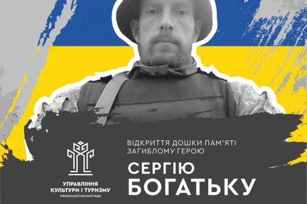 Сьогодні о 08:50 на фасаді Рівненського ліцею №8 відбудеться відкриття дошки пам’яті загиблому Герою Сергію Богатьку.