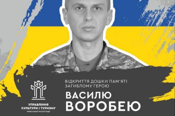 Сьогодні, 1 листопада, на фасаді Рівненського ліцею № 8 відбудеться відкриття дошки пам’яті загиблому Герою Василю Воробею.