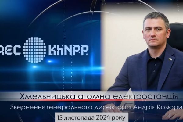 Звернення генерального директора Хмельницької АЕС Андрія Козюри від 15 листопада 2024 року щодо роботи підприємства, радіаційного стану в зоні спостереження ХАЕС.