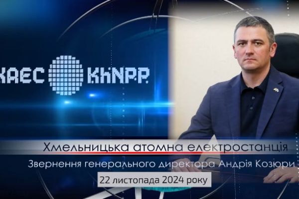 Звернення генерального директора Хмельницької АЕС Андрія Козюри від 22 листопада 2024 року щодо роботи підприємства, радіаційного стану в зоні спостереження ХАЕС.
