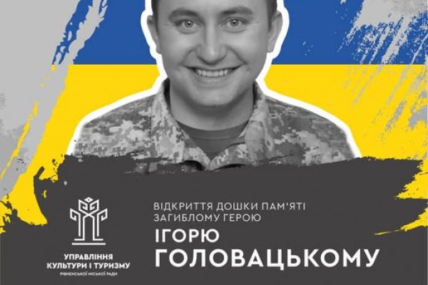 О 08:50 на фасаді Рівненського Ліцею №8 відбудеться відкриття дошки пам’яті загиблому Герою Ігорю Головацькому.