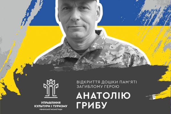 Сьогодні, о 08:50 на фасаді Рівненського ліцею №25 відбудеться відкриття дошки пам’яті загиблому Герою Анатолію Грибу.