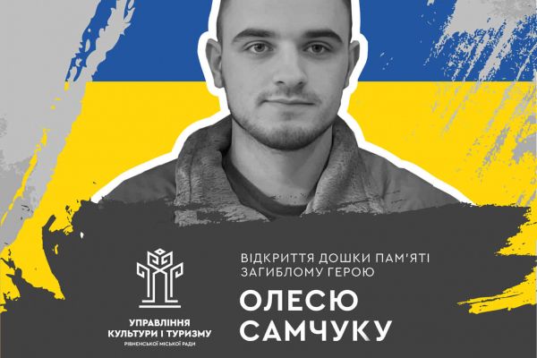 18 квітня о 08:50 на фасаді Рівненського ліцею №9 відбудеться відкриття дошки пам’яті загиблому Герою Олесю Самчуку.