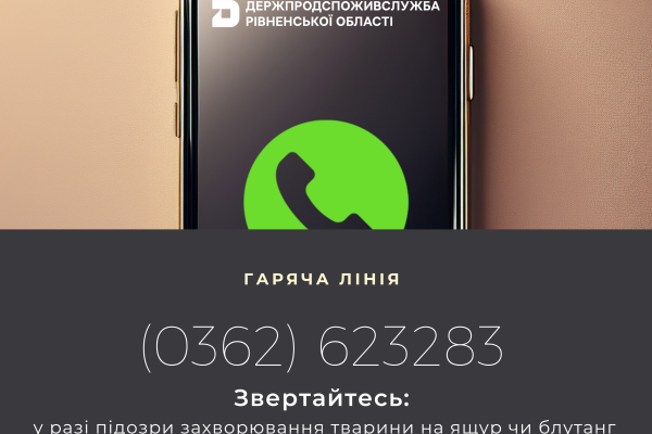 Гаряча лінія (0362) 62-32-83 діятиме при Головному управлінні Держпродспоживслужби у Рівненській області.
