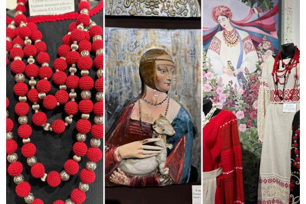 В експозиції – кераміка, батик, ткані панно, авторські прикраси, іграшки, а також елементи традиційного українського костюма.