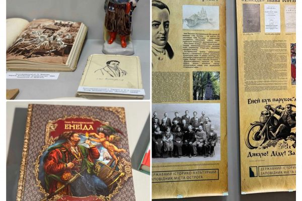 Поціновувачам української історії, літератури та мови представили 30 видань відомого твору Івана Котляревського, власне, від першого, що датується 1798 роком – і до сучасних книг. Частина експонатів – з фондів Музею книги та друкарства Державного історико-культурного заповідника м. Острог.