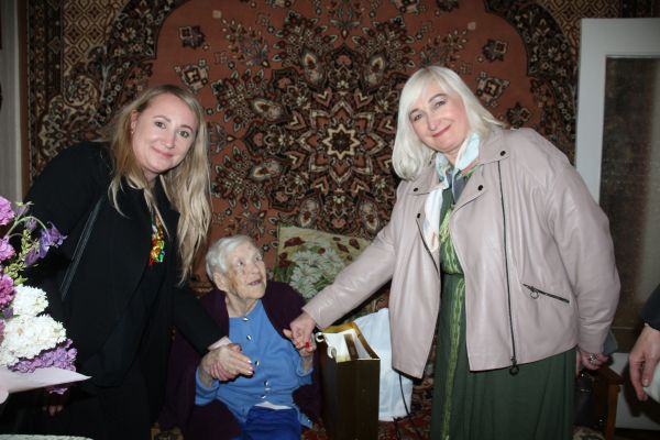 Працівники Департаменту вручили їй квіти, подарунки, зокрема і від Рівненська міська організація Товариства Червоного Хреста України. Крім того, за рахунок коштів Комплексної міської соціальної програми «Турбота» також перераховане і грошове «вітання».