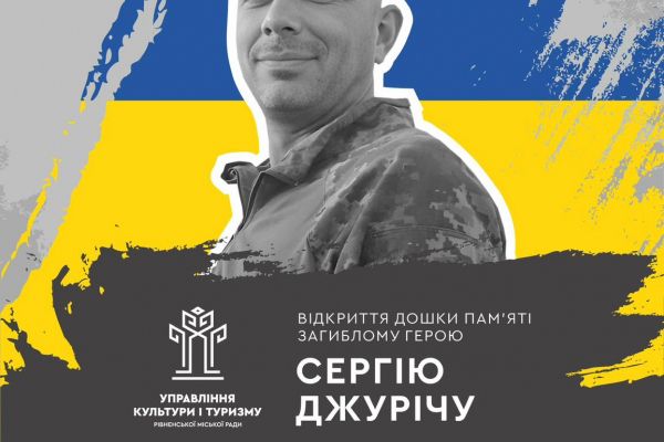 Сьогодні, о 8:50, на фасаді Рівненського ліцею №25 відбудеться відкриття дошки пам’яті загиблому Герою Сергію Джурічу.