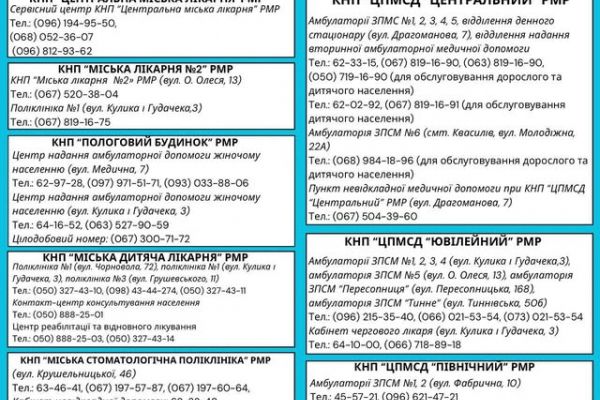 Рівнянам на замітку: в частині медзакладів міста змінилися контактні номери