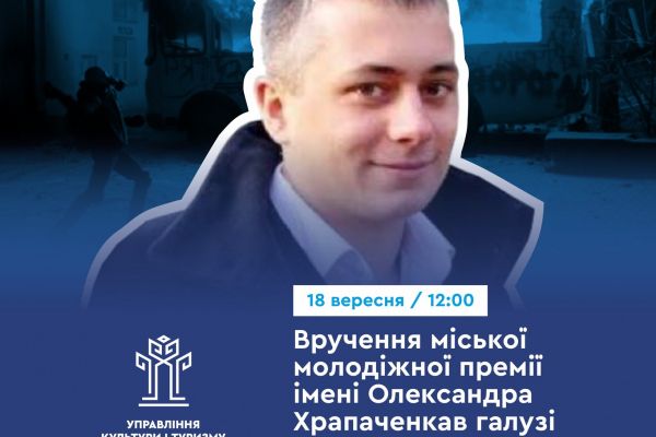 Сьогодні о 12:00 відбудеться урочисте вручення міської мистецької молодіжної премії імені Олександра Храпаченка в галузі театрального мистецтва.