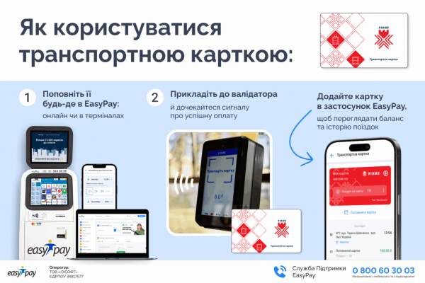 Поповнити транспортну картку БЕЗ КОМІСІЇ можна будь-де в платіжній мережі EasyPay: