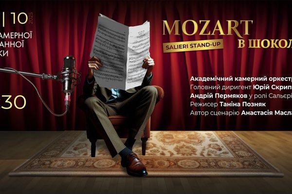 30 жовтня о 18:30 у Рівненській обласній філармонії відбудеться прем’єра музичного стендапу «Моцарт у шоколаді». Це не звичний концерт і не театральна вистава, а своєрідний музичний монолог, де звучить оркестр, а Сальєрі говорить – щиро, дотепно, часом гостро.