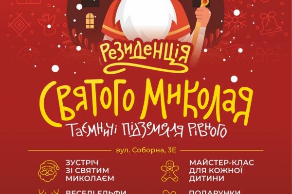 З 1-го грудня до 4-го січня у Таємничих Підземеллях Рівного (Парк культури та відпочинку імені Т. Г. Шевченка, вул. Соборна, 3-Е) діятиме Резиденція Святого Миколая.