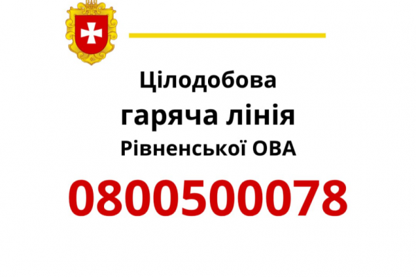 Рівненська ОВА продовжує залишатися на постійному зв’язку Телефони гарячої лінії 0800500078 або 0362400802