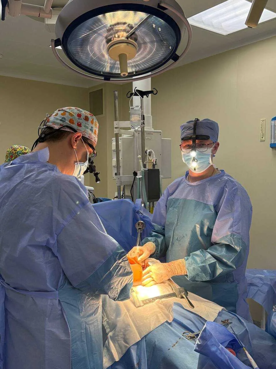 Та все ж лікарі центру, а це хірурги-онкологи Андрій Жильчук, Владислав Бабчанік та їхні колеги-анестезіологи, видалили пухлину. Крім того, провели реконструкцію кишківника, виконали пластику післяопераційної грижі.